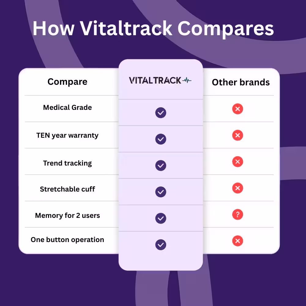 Leading doctors and healthcare professionals consistently choose Vitaltrack for its clinical-grade accuracy and reliability. Used in practices and recommended to patients nationwide, it gives you the same trusted readings your GP depends on—helping you monitor your health with total confidence.
